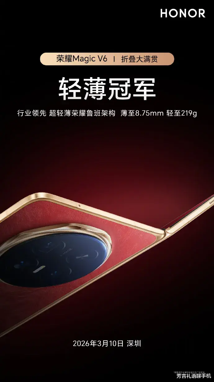 荣耀Magic V6已经在MWC2026上亮相,相关信息也已经公开的差不多了。国内将于3月10日发布。
