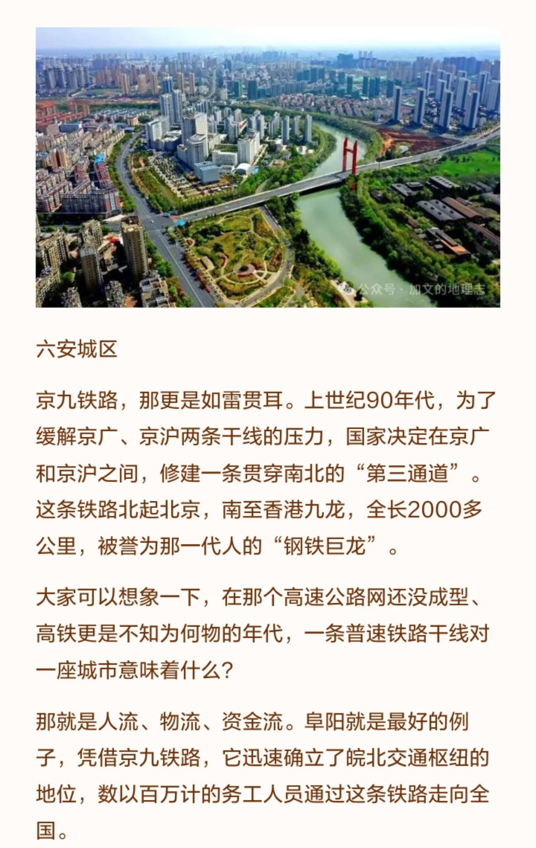回顾当年六安错失京九铁路的原因,地形、产业和线路规划以及区域博弈都是其原因所在,这份遗憾确实让人感到心痛。但是幸运的是,六安并没有一直停留在这个遗憾中,在宁西铁路与合武高铁的支撑下站稳了脚跟,并且未来还有多条高铁即将落地。