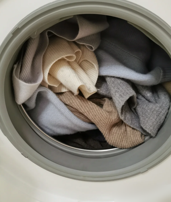 但“快”的代价是“简化”。有次我用快洗模式洗沾了咖啡渍的白T恤,结果晒干后领口还留着淡淡痕迹;朋友用快洗模式洗冬天的厚毛衣,结果袖口起了毛球。这些不是个例——快洗模式的清洁力和标准模式差了一截,只适合轻度脏污的衣物,比如日常穿的T恤、薄外套,要是沾了油渍、泥渍,或者衣服本身厚重(像毛呢大衣、加绒裤),快洗根本洗不干净。更要命的是,快洗模式的转速通常更高,对丝绸、蕾丝这类娇贵面料来说,高速摩擦就像“暴力揉搓”,洗几次就变形起球。