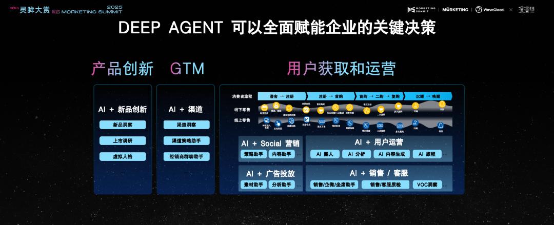 在第十届灵眸大赏Morketing Summit“智启”「AI驱动的中国营销增长引擎」专场上,Morketing邀请到了深演智能联合创始人兼首席运营官谢鹏带来《AI 智能体重构营销决策》主题分享。