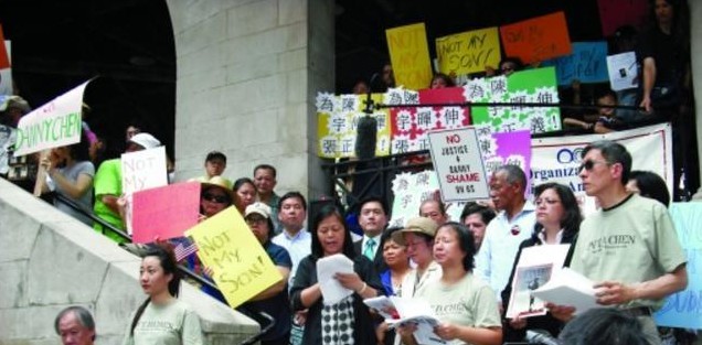 我跟他讲了整件事情,他答应了一定会给死去的陈宇晖查清楚事情的原委。当然,美国军方一开始的说法简直太不可思议了,他们竟说陈宇晖是因为家里的事情想不开才自杀的。这种说法真让人难以相信。事情越闹越大,曼哈顿的街上,美国华人搞起了合法的游行。他们就是要让军方把事儿查清楚,得有人为这事儿担责。因为受到各方压力,不少机构开始着手调查,陈宇晖当兵时的一些伙伴也勇敢地站出来为他说话。那些被偷偷掩盖的坏事,最终还是曝光在了大家面前。