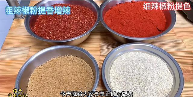 这两种辣椒面各有关键作用,决定红油辣椒风味与色泽,一者增香增辣,另一者则增色同时再次增香。