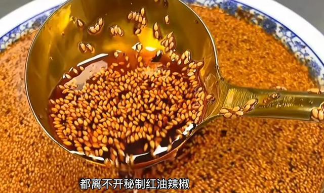 大厨常制红油辣椒,先将油加热,再融豆瓣酱,油热后加蒜末,撒葱花,旨在使辣椒油味道浓郁可口。