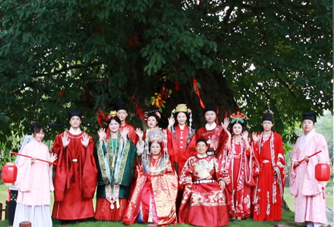七夕节,是中国传统节日中最具浪漫色彩的日子。8月22日七夕节当天,一场别具特色的“夫妻树下集体汉服婚礼”在成都蒲江县西来古镇临溪河古榕树片区举行,新人们在现场嘉宾和千年古榕“夫妻树”的见证下迈入人生新阶段。