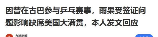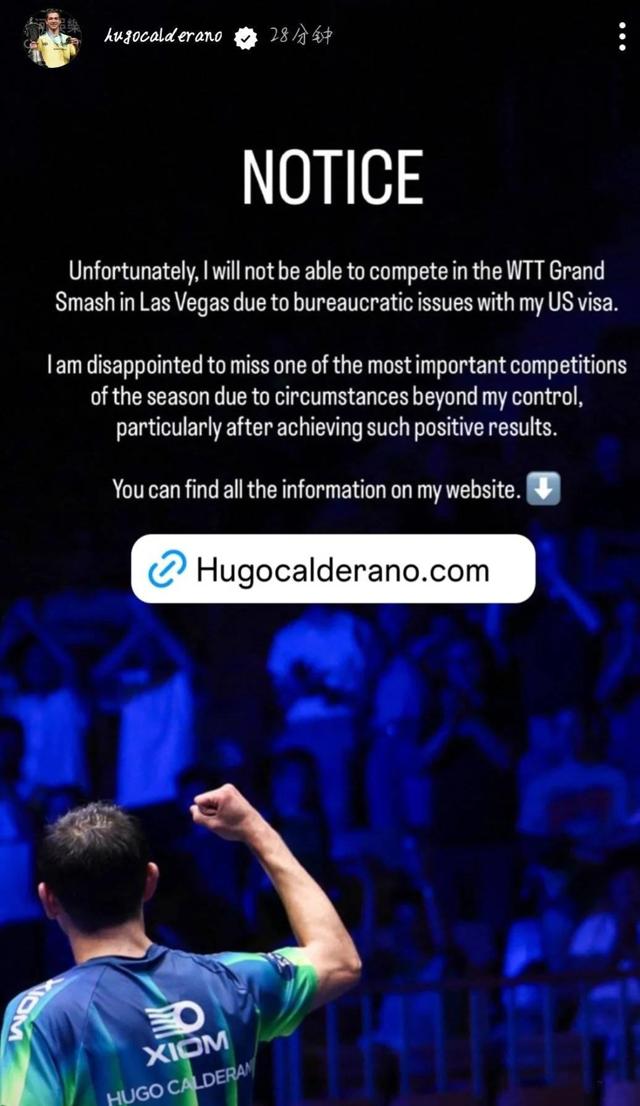九派新闻|因曾在古巴参与乒乓赛事,雨果受签证问题影响缺席美国大满贯,本人发文回应.2025
