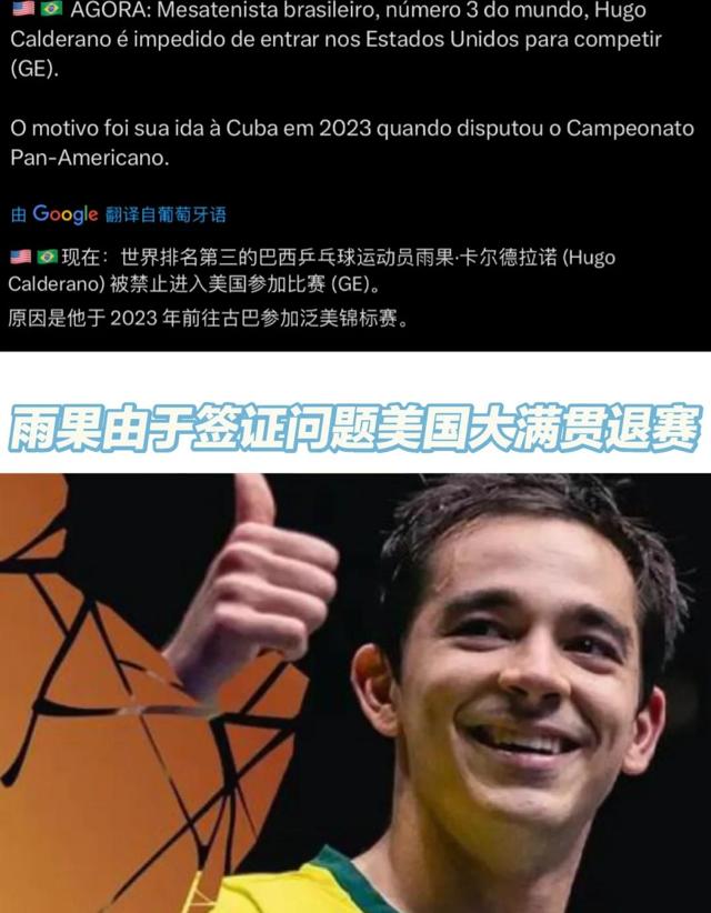 然而就在比赛前夜,世界排名第三的巴西球员雨果突然在社交媒体宣布退赛,原因竟是美国签证出了问题。