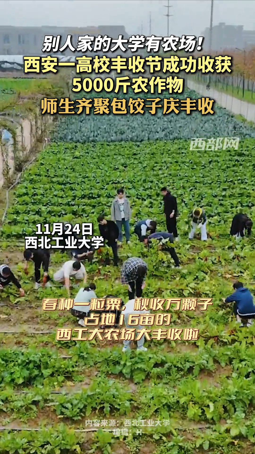 值得一提的是,这所高校还有自己的农场,并在2024年还取得了大丰收,收获了5000斤的农作物,南方有一些高校在校园湖捕鱼,师生一起吃鱼宴,西工大的师生则一起庆祝农作物丰收。