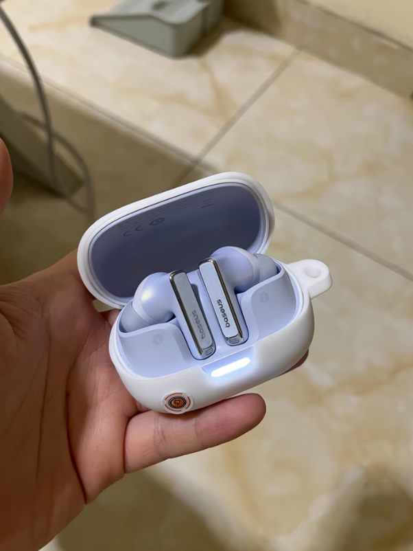 佩戴体验:单耳5.2g半入耳设计,4种尺寸耳塞(含XS码)适配小耳道,敏感耳道的用户佩戴4小时无胀痛。听诊器效应弱,IPX4级防水适配通勤,不建议高强度运动,长时间佩戴无闷热感,适配办公场景。