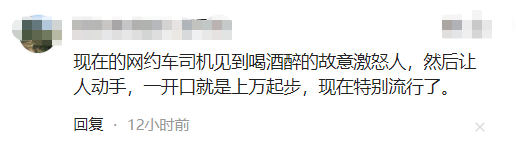 还有位网友则认为司机想坑女子的钱,现在的网约车司机见到喝醉酒的故意激怒人,然后让人动手,一开口就是上万起步,现在特别流行了