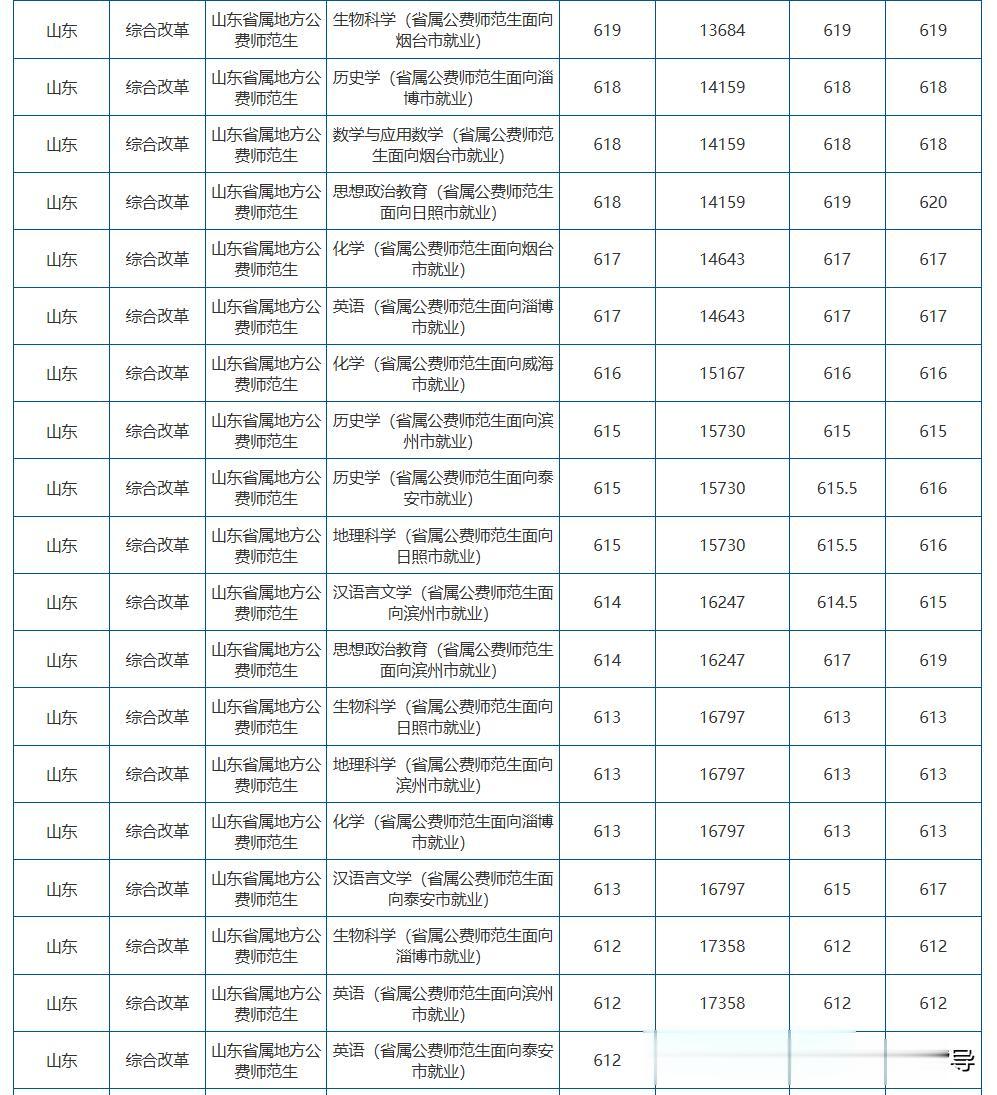 录取最高分为620分,英语专业(省属公费师范生面向烟台市就业)