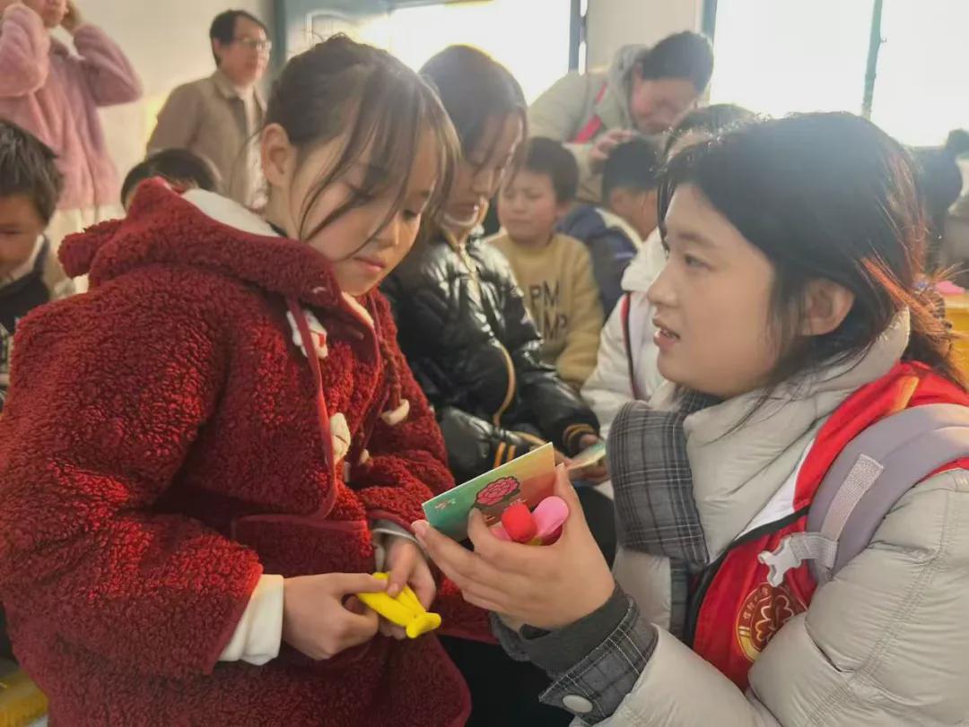 活动现场温情流淌,信阳农林学院的学生们特意准备了亲手制作的手工橡皮泥作品,作为小礼物赠送给孩子们。每一份礼物都凝聚着大学生们的用心与祝福,孩子们手捧礼物,脸上绽放出灿烂的笑容。本次活动不仅是一次课业辅导与兴趣启蒙,更是一场心灵之间的温暖对话,让程庄村小学的孩子们真切感受到来自社会的关怀,为他们幼小的心灵注入了向上向善的力量。