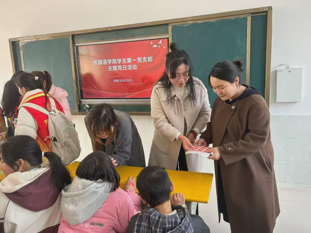 近日,信阳农林学院外国语学院联合邢集镇程庄村党支部,走进程庄村小学,成功举办了一场以“走进童真世界,共育时代新苗”为主题的暖心社会实践活动。通过丰富多彩的互动与实践活动,为乡村儿童传送知识、欢乐与关怀,为他们的成长营造了温馨友爱的成长氛围。