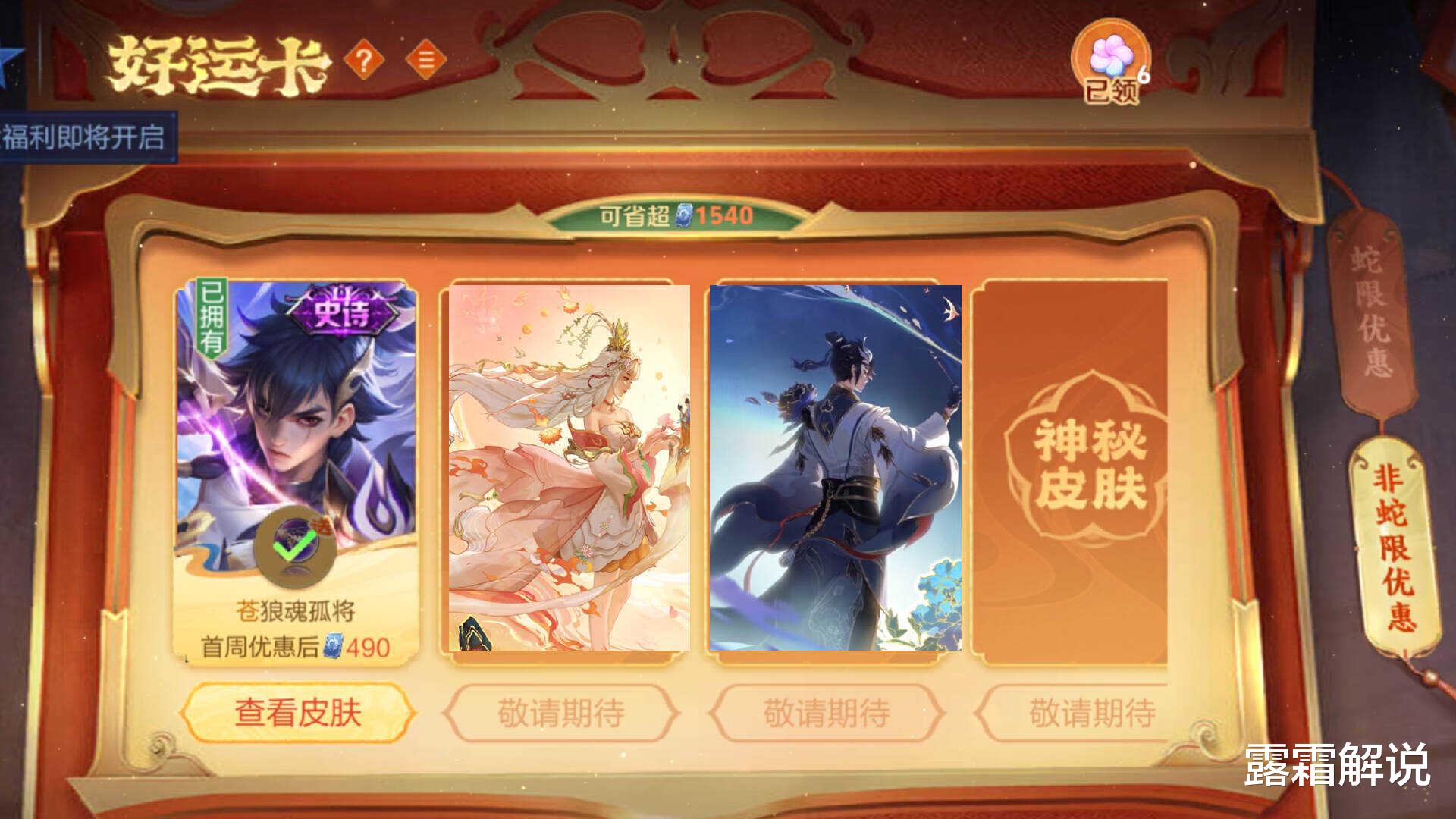 西施和狄仁杰的两款皮肤,都会加入好运卡的优惠中,之前开通了好运卡的玩家,购买这两款皮肤起码可以节省好几百点券。