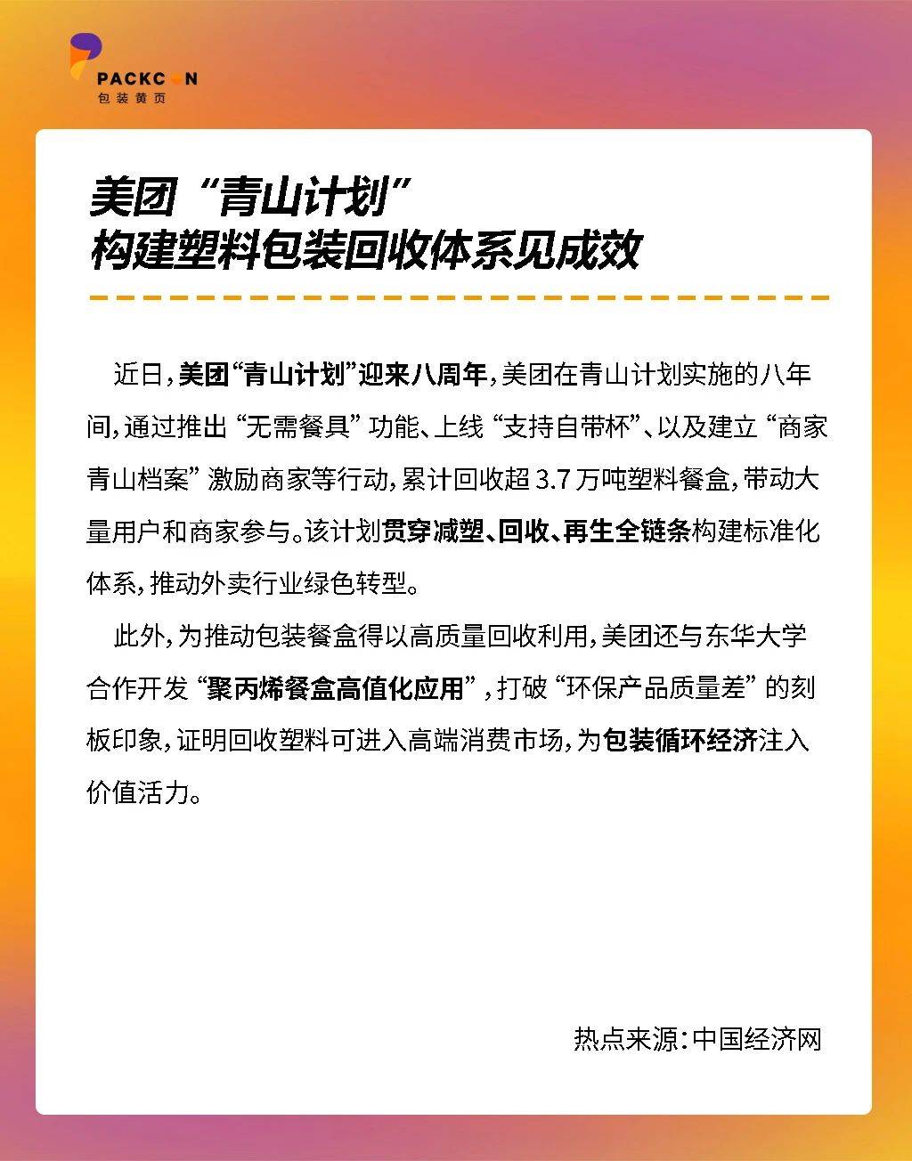 ❸美团“青山计划”构建塑料包装回收体系见成效