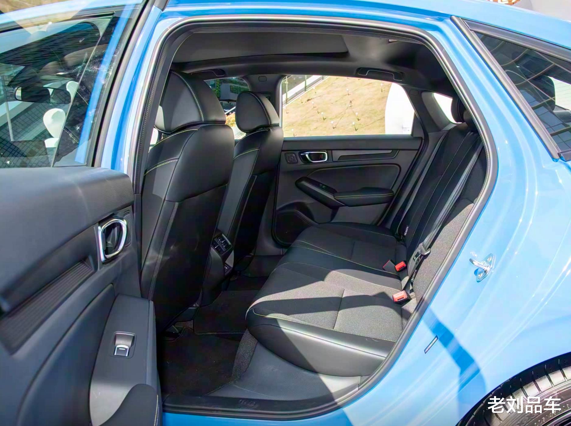 后排空间表现,得益于2735毫米的轴距,在前排调整好正常驾驶坐姿后,腿部空间两拳有余,头部富余一拳,丝毫不压抑,对于紧凑级车来说算是不错的,与思域处于同一水平,比轩逸略逊一筹。座椅的舒适度和支撑性与前排类似,坐垫长度适中。不过后排的配置就比较简单,油电混合的先锋版和两款极速版,没有后排出风口和充电口。除非二排利用率不高,否则建议你从中配开始考虑,低配所带来的二排舒适性十分有限。
