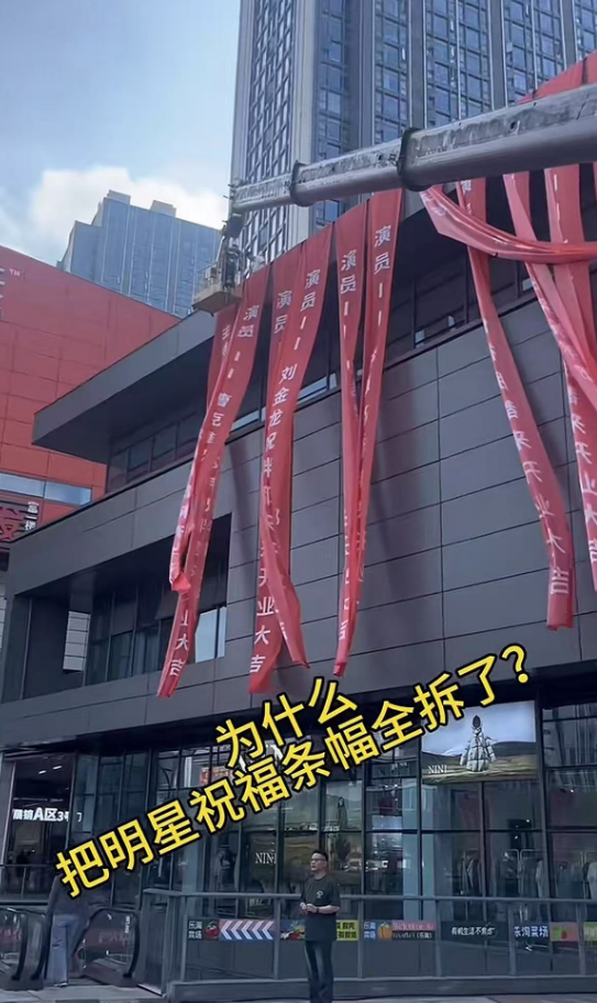 随后,胖都来门口挂的横幅被火速拆除,有不少市民甚至拍摄到拆除横幅的现场,连同明星送的祝福也一并删除了。