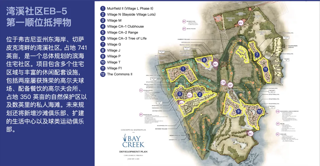 EB-5为⾼级贷款由320多英亩不动产作为第一顺位抵押,并已在当地政府完成抵押登记。每位EB-5投资者均享有较短的独⽴4年贷款期,不受其他EB-5投资者贷款期限的影响,且4年期比典型乡村项目更短。