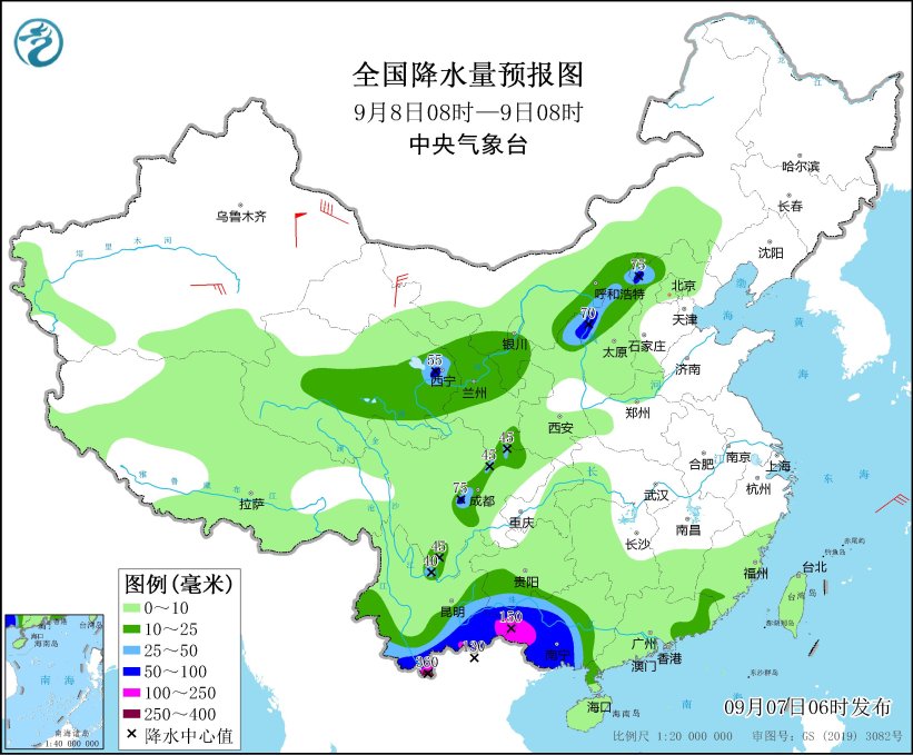 9月7日,内蒙古中部、河北中部及新疆北部等地将有中到大雨。8日至10日,西北地区中东部、内蒙古大部、东北和华北等地将出现小到中雨,部分地区可能有大到暴雨。此外,新疆北部、内蒙古大部、西北地区东部、华北及东北地区等地气温将会有所下降。