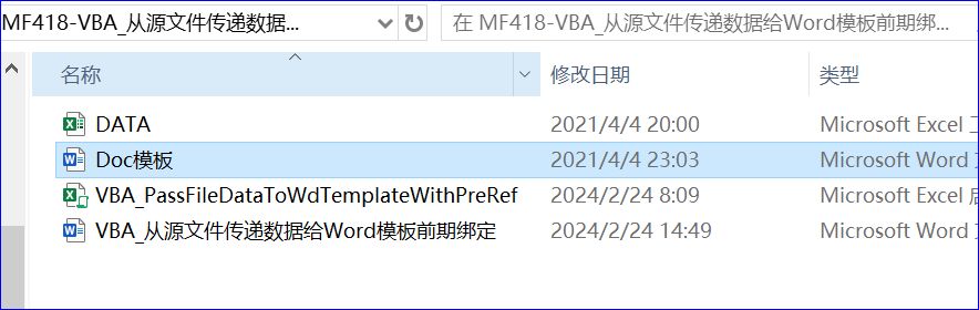 代码见程序文件:VBA_PassFileDataToWdTemplateWithPreRef.xlsm