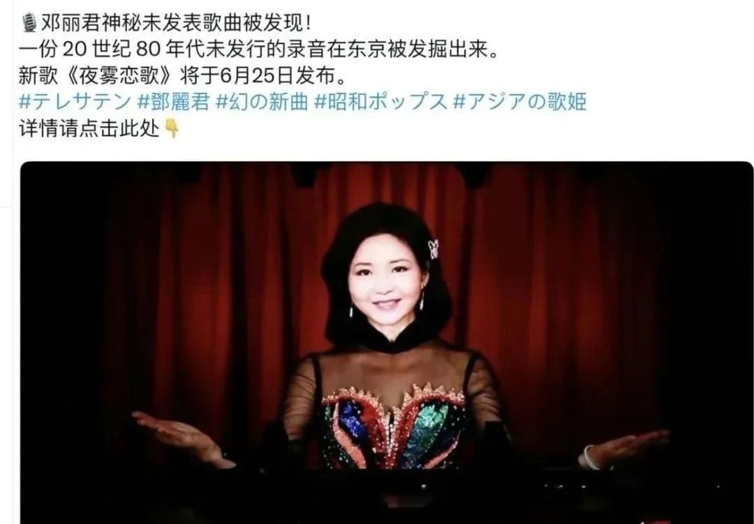 日本环球音乐公司公布,将于6月25日发行一首邓丽君生前未发布的新歌。