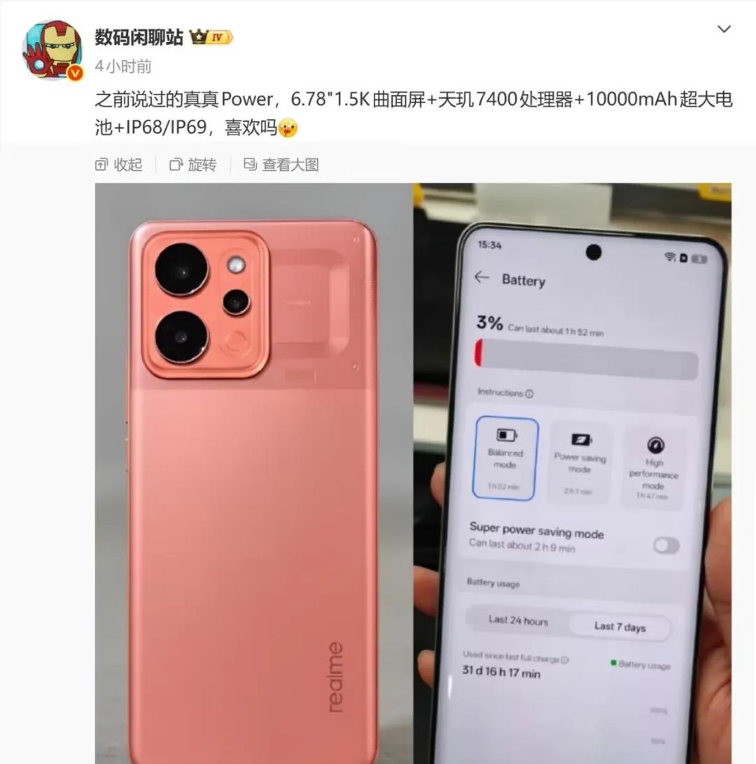 举个例子,最近曝光的同样搭载10000毫安时电池的真我Power(暂定名),搭载的处理器也就只是天玑7400,天玑7400那可是彻头彻尾的中低端SOC。