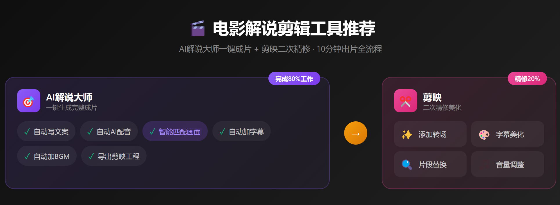 AI解说大师负责"批量生产",剪映负责"精细打磨"。