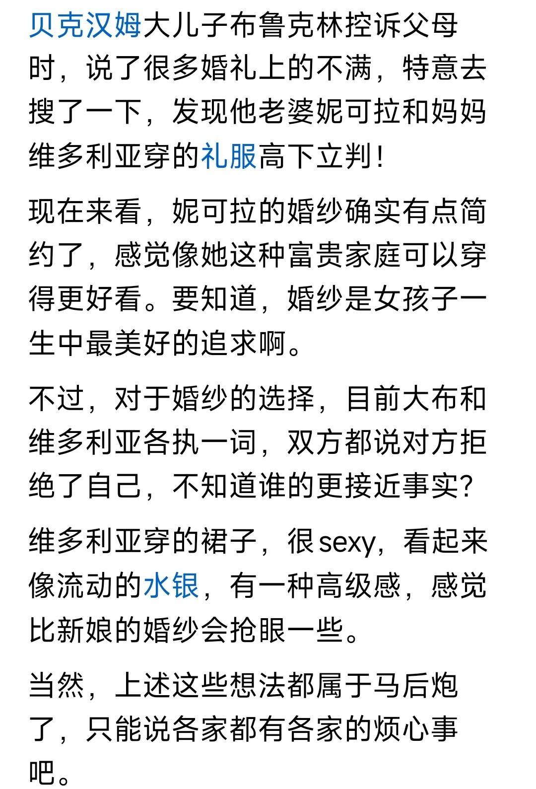 婆媳矛盾原来不止国内有,国外贝克汉姆维多利亚夫妇一家也有,甚至作为他们大儿子的布鲁克林直接发长文控诉父母,站队老婆妮可拉,和亲生父母完全决裂。