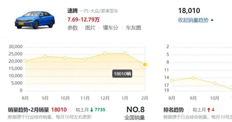 最后,我们来看看一些数据。根据乘联会的数据,2023年2月,速腾销量为20210辆。这个数字,确实令人瞩目。但是,如果我们进一步分析,会发现这个数据也有其局限性。首先,这只是单月销量,并不能代表全年的销量趋势。其次,这其中可能包含了经销商的冲量行为,以及一些促销政策的影响。因此,我们不能仅仅依靠单月销量数据,就断定速腾未来的发展前景。我们需要持续观察,才能得出更客观的结论。