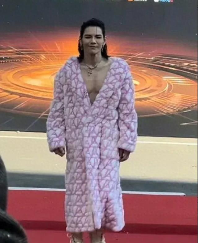 不怪连旁人都憋不住笑,向佐的这件白色皮草是背后乾坤,不但胸前大秀胸肌,还大露背秀起了光滑的美背。