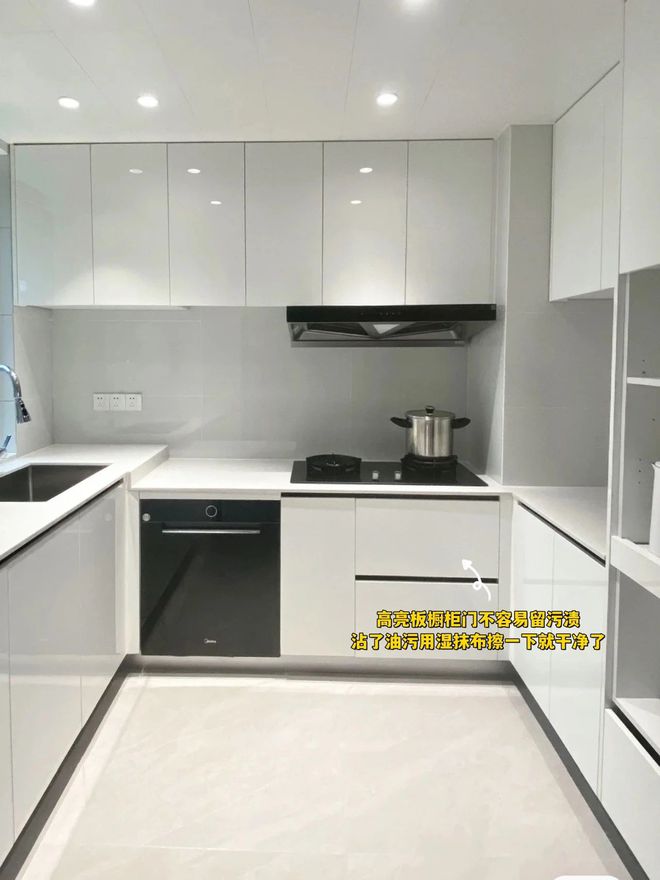 (推荐)▲高亮板橱柜门:这种材质的表面很光滑,有一定的反光效果,可以让整个厨房看起来更加宽敞、通透。