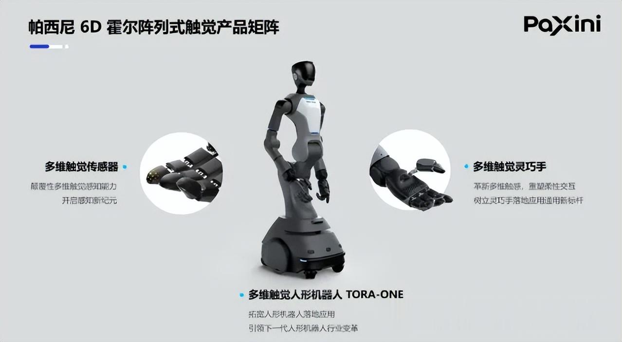 帕西尼以触觉传感器技术入局人形机器人/具身智能赛道。帕西尼率先发布了全球首款搭载HAPTA异构多核阵列软硬件架构(Hetero-ArrayProbing Tactile Architecture)的ITPU多维触觉处理单元(Intelligent Tactile Processing Unit),以及基于触觉与视觉多模态感知模型和前沿Al算法的人形机器人TORA-ONE和触觉灵巧手DexH系列。帕西尼推出的6D霍尔阵列式触觉传感器打破了海外技术垄断,成为机器人“感知觉醒”关键技术的代表之一。