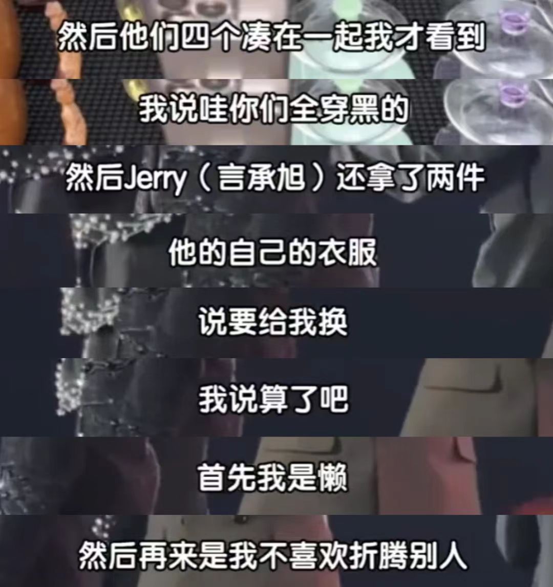 关于服装,他现是说是自己懒,言承旭有帮他准备衣服。