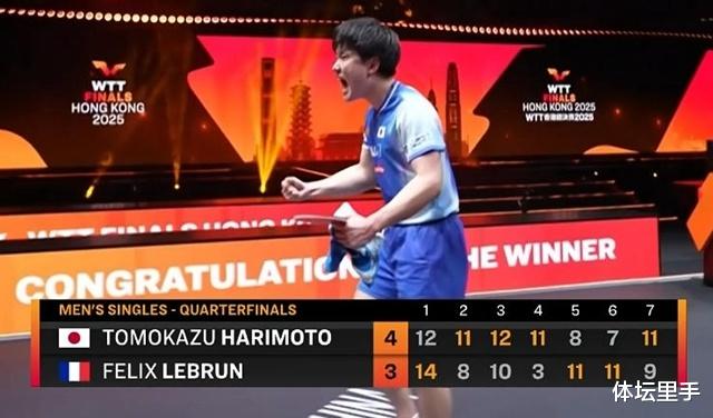 北京时间12月13日,2025WTT香港总决赛男单1/4决赛,张本智和与费利克斯·勒布伦上演强强对话。此役,张本智和一度以3-1领先,不过却被费利克斯·勒布伦连扳两局拖入决胜局,最终苦战7局的张本智和,拒绝被逆转以4-3险胜,同时也终结了自己此前对费利克斯·勒布伦的5连败!