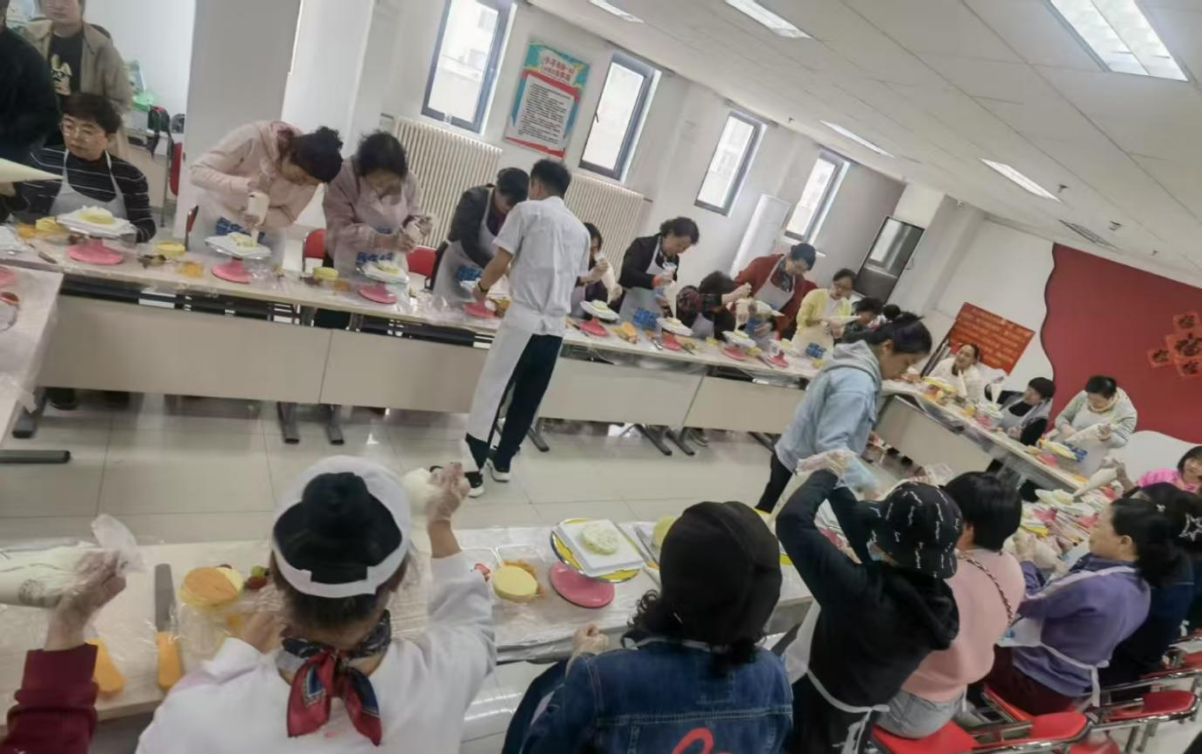 在老师讲解完毕后,居民们纷纷迫不及待地动手制作起来。大家分成小组,互相协作,气氛热烈而融洽。有的年轻人为了给母亲一个惊喜,独自认真地制作着,他们小心翼翼地涂抹奶油,精心挑选水果进行装饰,希望能做出一个完美的蛋糕送给母亲,表达自己对母亲深深的感激之情。在制作过程中,大家充分发挥自己的想象力和创造力,原本朴素的蛋糕胚在他们的手中逐渐变得精致起来。有的蛋糕上用奶油挤出了美丽的花朵,有的则摆放出了可爱的心形水果图案,还有的在蛋糕上写下了对母亲的祝福话语。每一个蛋糕都饱含着制作者的心意,成为了独一无二的作品。