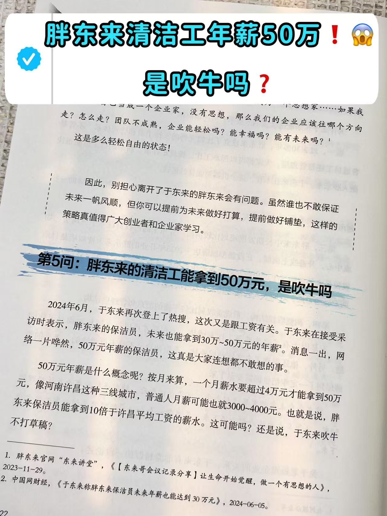 50万元年薪是什么概念呢?按月来算,一个月薪水要超过4万元才能拿到50万元,像河南许昌这种三线城市,普通人月薪可能也就3000~4000元。也就是说,胖东来保洁员能拿到10倍于许昌平均工资的薪水。这可能吗?还是说,于东来吹牛不打草稿?