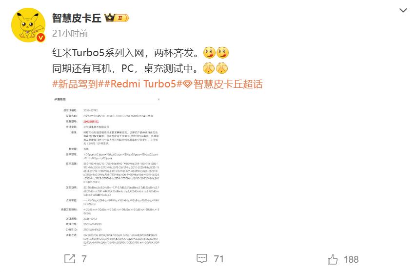 红米Turbo 5预计定价1799元-1999元,红米Turbo 5 pro预计定价1999元-2199元。