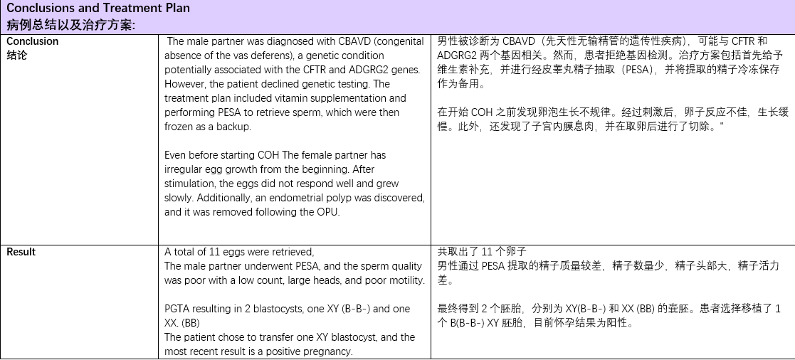 回首往昔,历程艰辛卓绝。医学难题似崇山峻岭,CBAVD基因谜题令治疗抉择艰难,每一步都在未知与期待中徘徊;爱人卵泡不均、卵子不佳及息肉干扰,大幅削减受孕希望、威胁胚胎着床。医疗团队精准施策、多管齐下,依我病情PESA取精保希望火种;为爱人精准促排,全程监测卵泡、灵活优化方案,手术除息肉后精心调内膜,多药协作打造理想孕育环境,于重重困境中开辟希望通道。