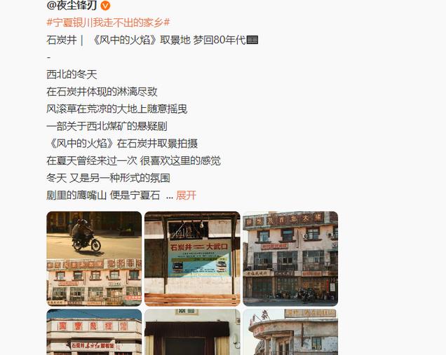 “夜尘锋刃”则称,关于西北煤矿的悬疑剧《风中的火焰》取景地鹰嘴山,让人梦回80年代。