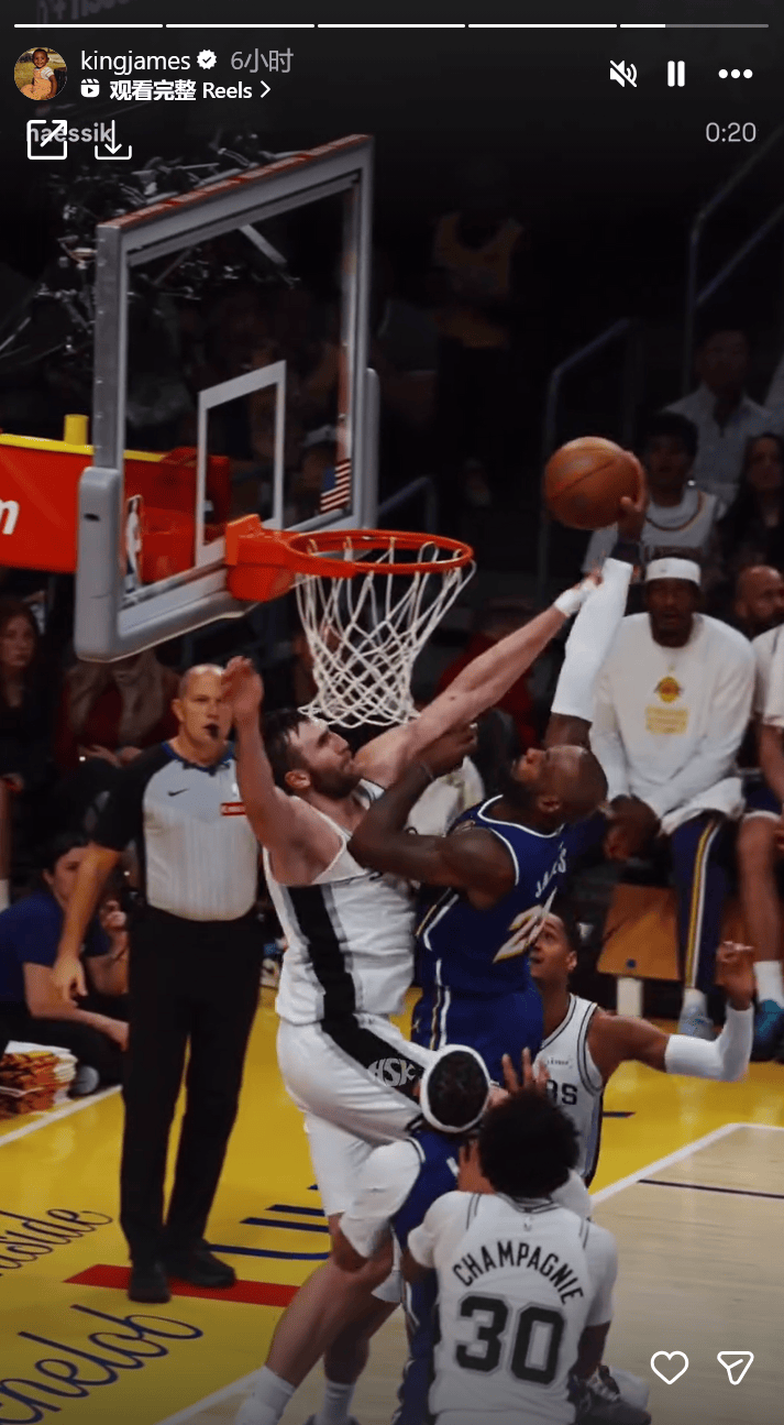 在今天早些时候,詹姆斯在社交媒体上转发了多条该回合的相关动态,足以可见詹姆斯对于自己这记扣篮的欣赏。考虑到詹姆斯已经接近41岁,能够在比赛中完成这样的扣篮实属不易。