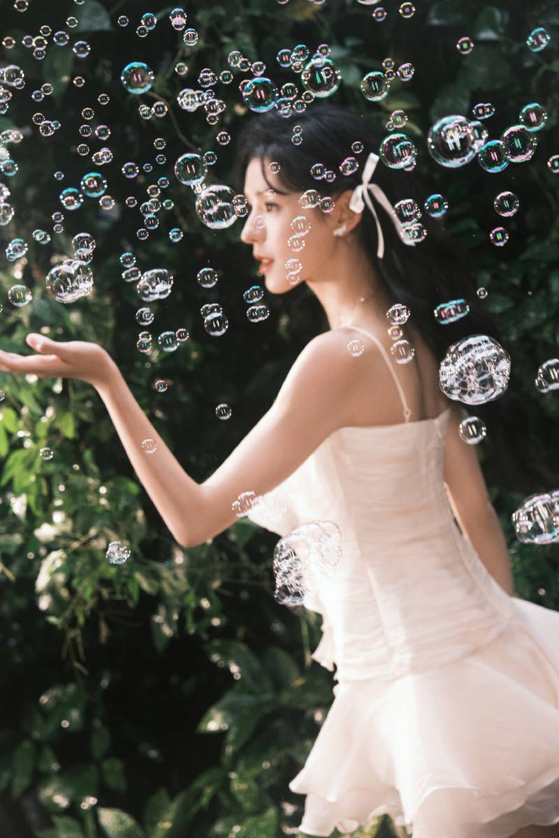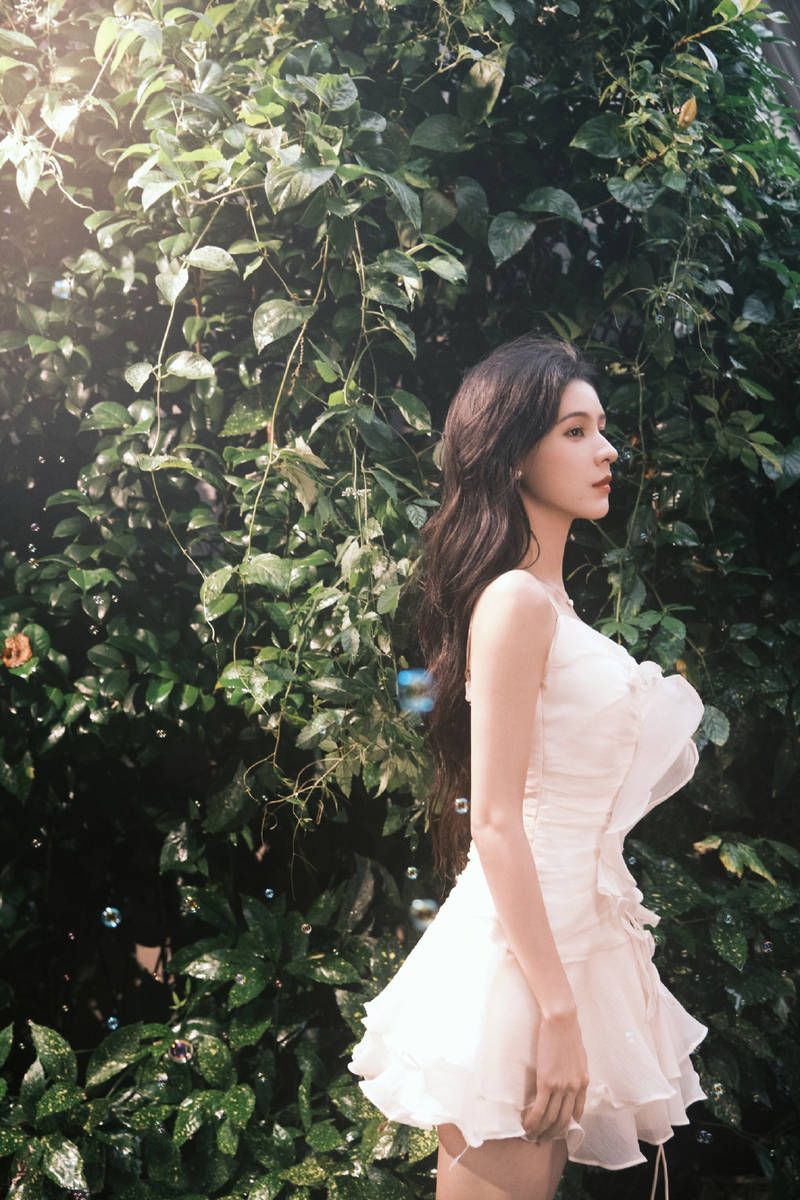 森林是大自然的馈赠,也是诗人和艺术家灵感的源泉。站在这片葱翠之中,张予曦宛如与大自然融为一体。她身上那身白色的短裙仿佛清新的一片云彩,搭配上盘旋在她周围的细小花朵,散发着一股迷人的气息。微风拂过,裙摆漂浮起来,仿佛在诉说着森林的美丽与神秘。