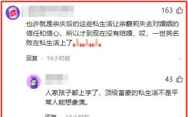 还有网友表示,终于理解宗馥莉为什么不愿意结婚,估计早就知道自己的父亲什么样了吧?