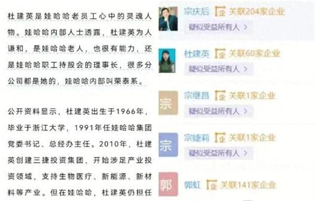 据说,他们的母亲是杜建英,当年也是娃哈哈集团里的灵魂人物,名下还掌管了不少分公司和话语权。