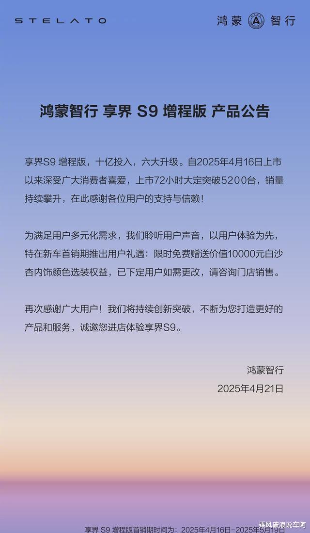 这背后,是不是也说明享界S9增程版有点“慌”了?