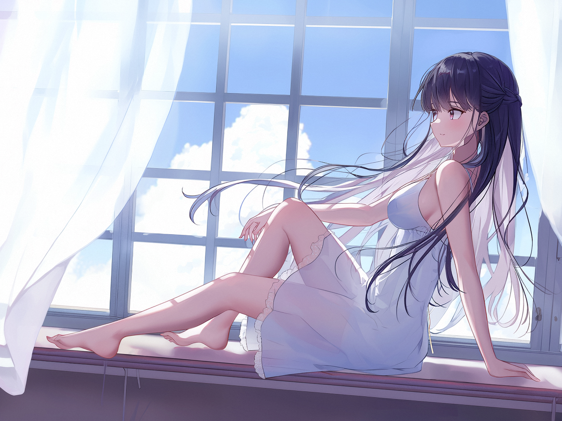 哇,这几张二次元插画真是太美啦!画面中的女孩姿态优雅又灵动,坐在窗边的模样氛围感直接拉满。阳光透过窗户洒进来,与飘动的发丝、轻柔的裙摆相互映衬,细节处理得精妙绝伦。色彩搭配清新又柔和,给人一种宁静美好的感觉,每一幅都仿佛藏着一个动人的故事,画师的功底真的太厉害啦!
