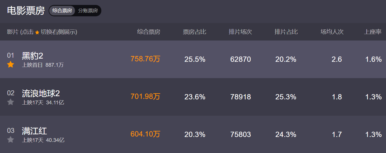 夺冠仅3天,《流浪地球2》丢了第一,《黑豹2》9小时票房破758万