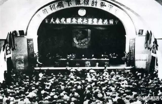 1945年4月份,23号那天,就在咱们抗日战争快要打赢的时候,中国共产党在延安的杨家岭大礼堂,举办了他们第七次的全国大会。
