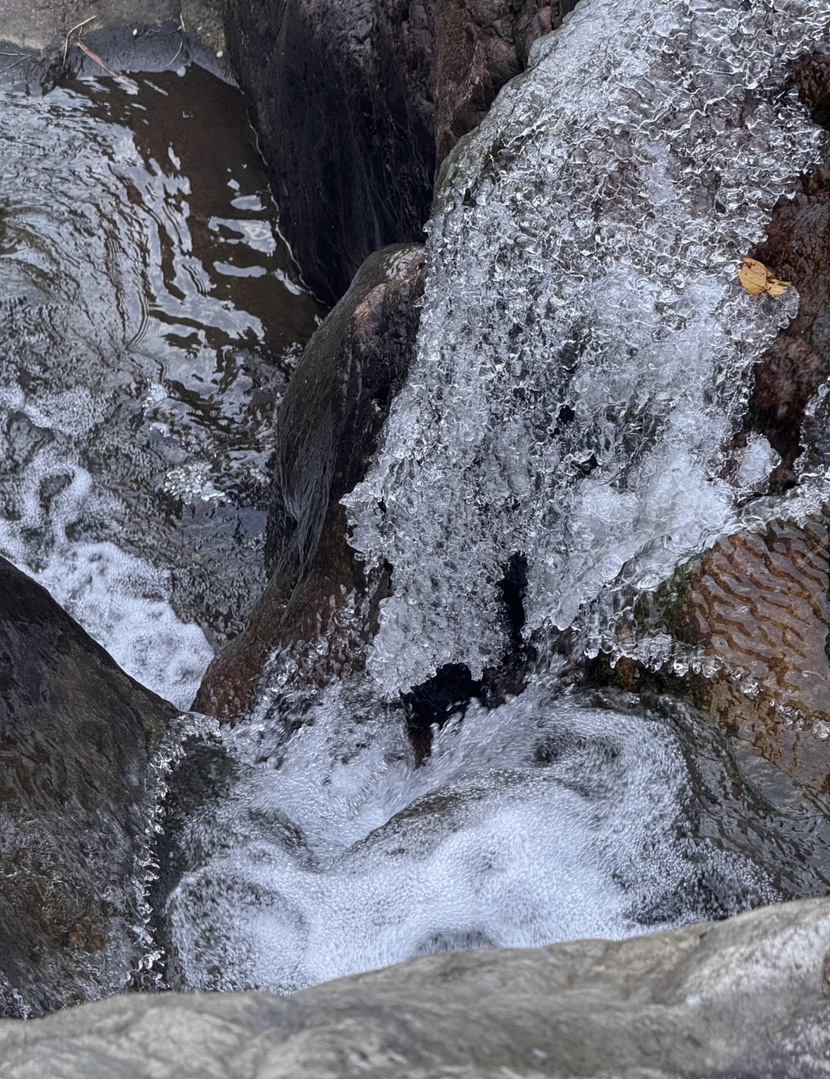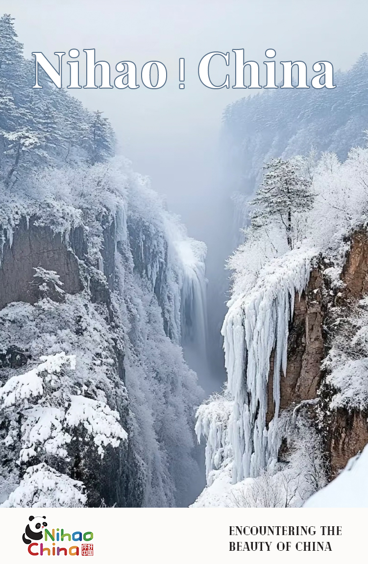 三叠泉瀑布本就以层层叠叠、飞流直下的美景著称,而当它被严寒封印成冰瀑时,更是增添了几分神秘与壮丽。晶莹剔透的冰柱在阳光下闪烁着耀眼的光芒,仿佛时间在这一刻静止了。
