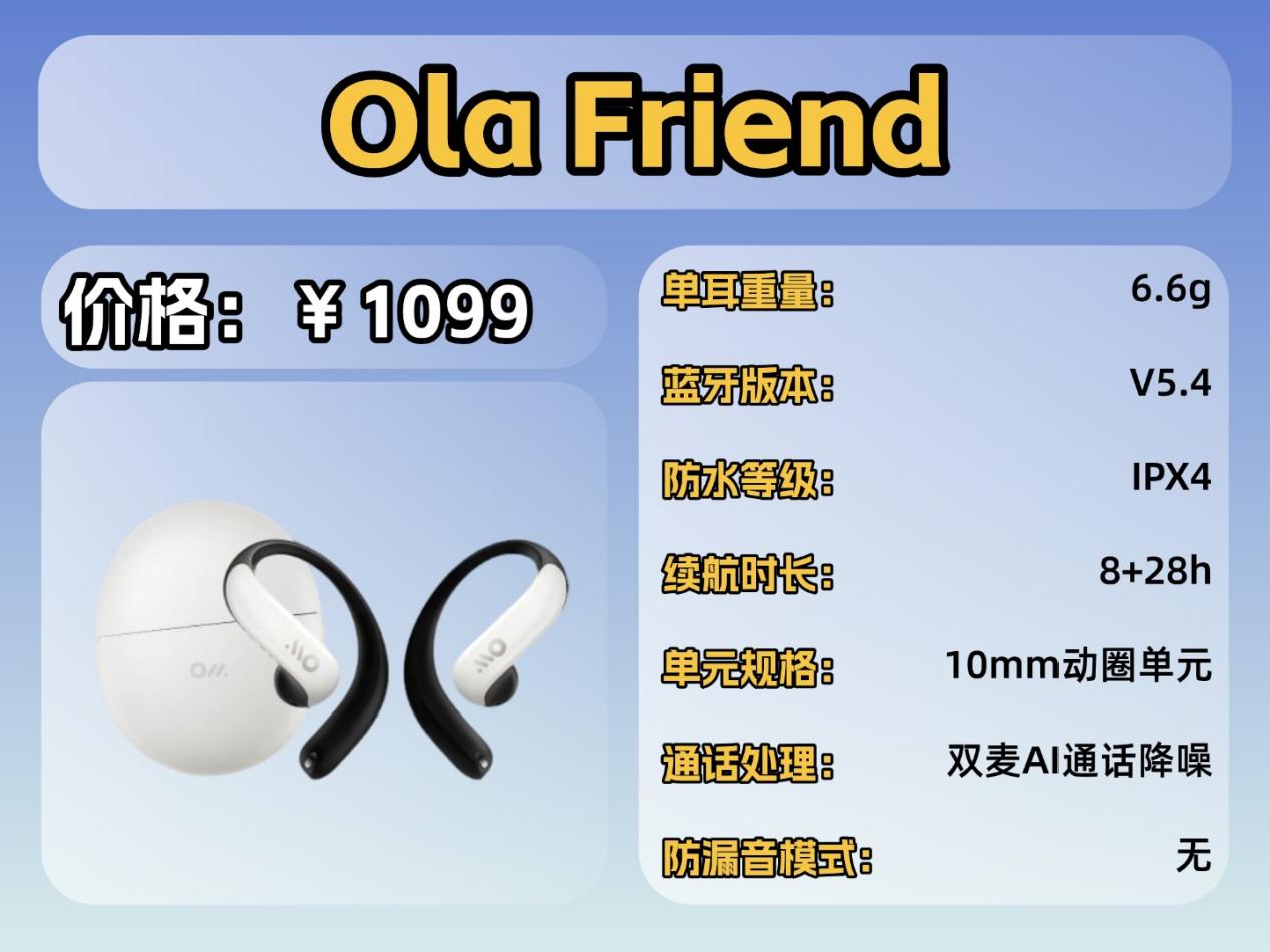 Ola这款耳机的通话效果很好,它搭载的四麦高清降噪通话功能,即使是室外比较吵的环境中,也能保持人声清晰,显著提升通话时的沟通质感;在续航方面上,耳机 8+28 小时的续航能力,足够轻松应对日常需求;耳机搭载的蓝牙 V5.4 芯片,能提供稳定且高效的连接,保障日常使用的流畅性。