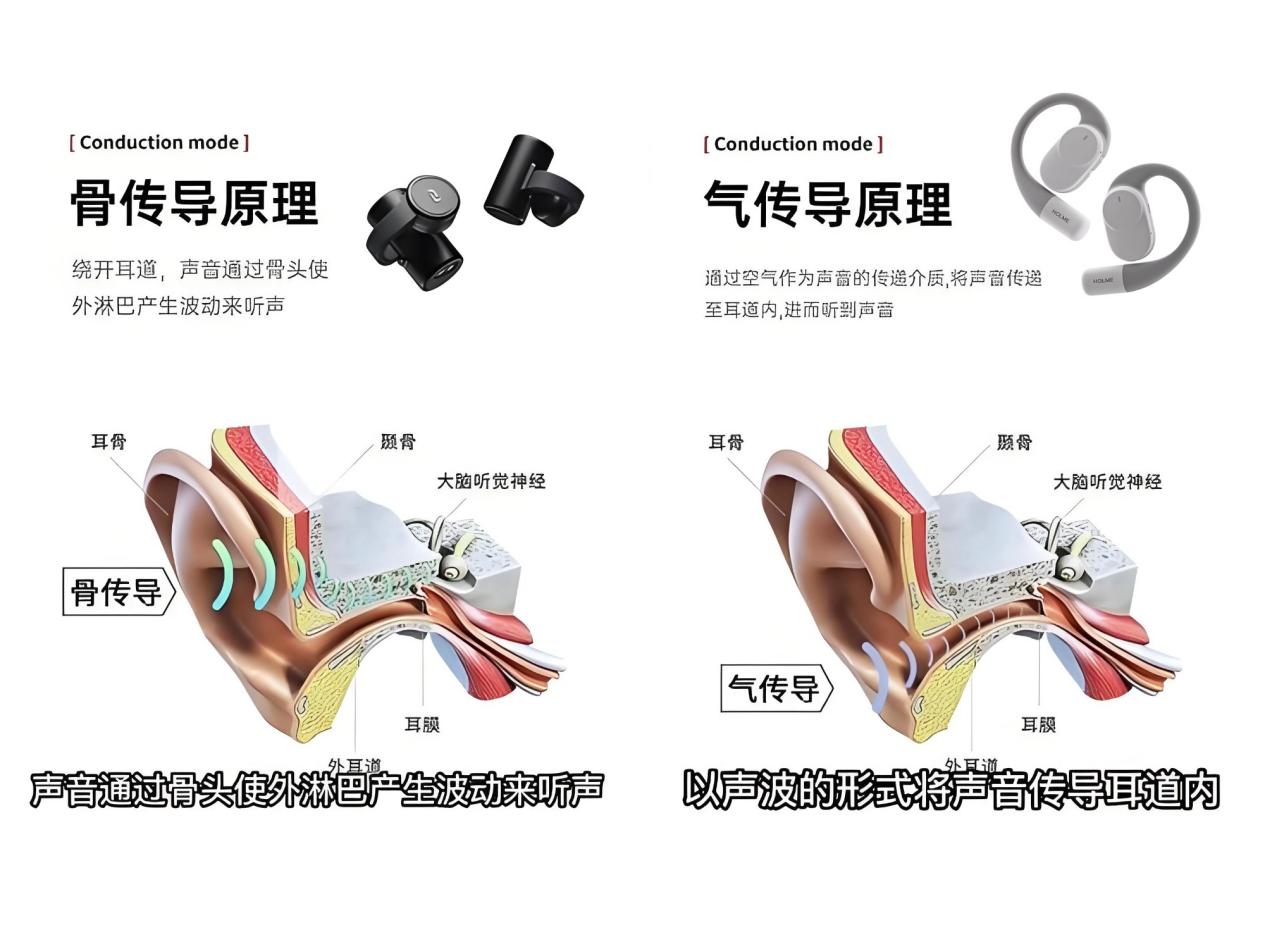 可传统耳机就得靠空气振动出声,声音还得顺着耳道传到鼓膜,等鼓膜振动了,咱们才能听见声儿,两者比起来,开放式耳机用着明显更自在。