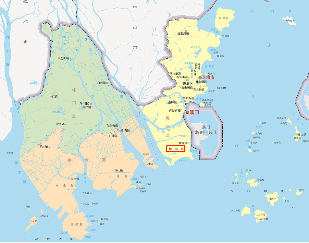 事实上,珠海本身已经够小的了。广东省面积只有18万平方公里,划分的行政区数量全国最多(分为21个,数量与四川省并列),这就决定了广东的地级市本来就小。并且,广东经济和人口非常偏科,高度集中在大湾区,深圳、佛山、东莞、中山、珠海面积都很小,而珠海是其中最小的。截至2024年7月,珠海市陆地面积1725.07平方公里,只有上海市的四分之一略多,而北京市差点有十个珠海大了。本就不大的珠海,横琴岛又只是其中一小部分,行政区为珠海市香洲区横琴镇,面积106.46平方公里。而澳门特别行政区,面积只有横琴岛的三分之一,最新数据是33.3平方公里,真可以算弹丸之地。